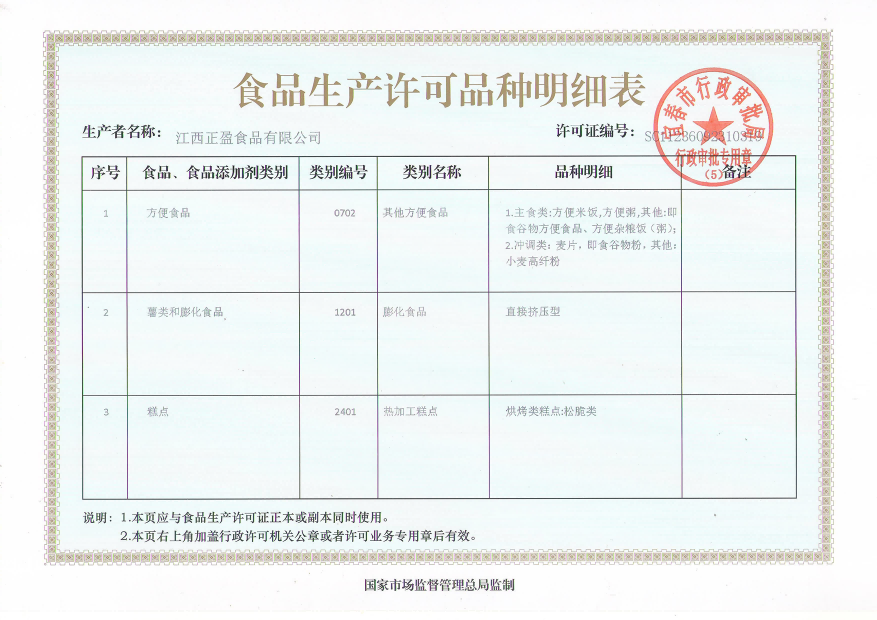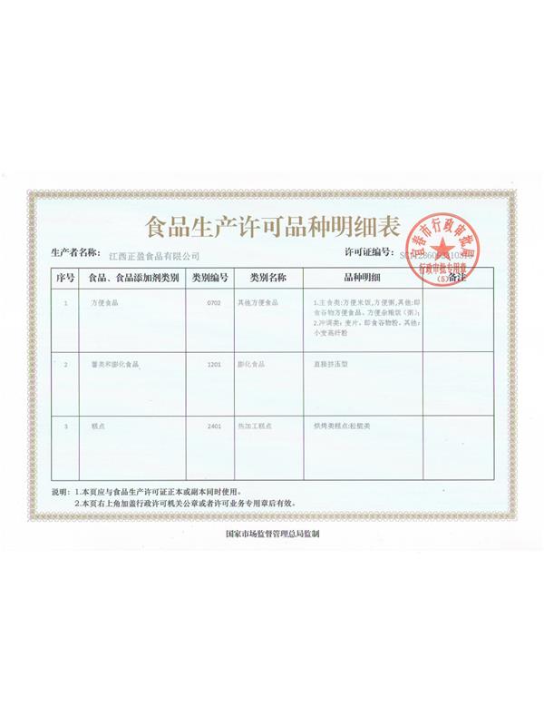 食品生產(chǎn)許可證品種明細(xì)表