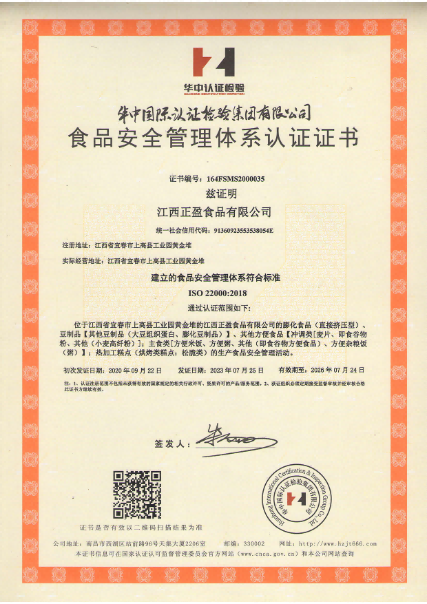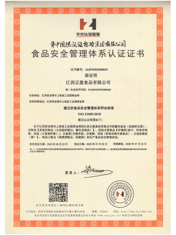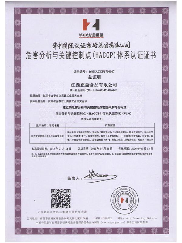食品安全體系認(rèn)證證書